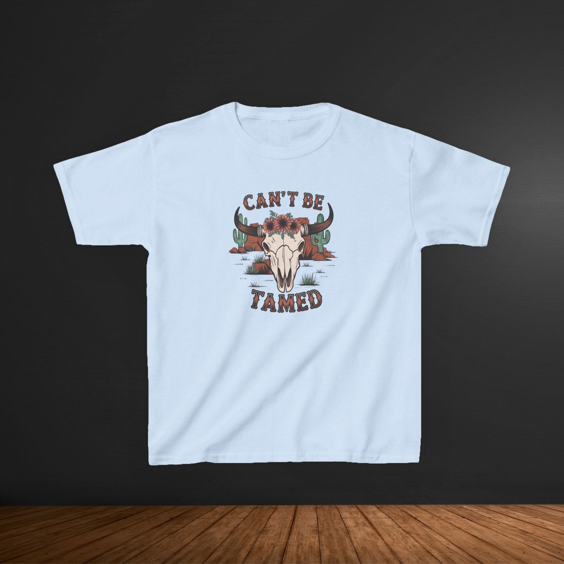 "Can't Be Tamed" Western Skull Kids T‑Shirt