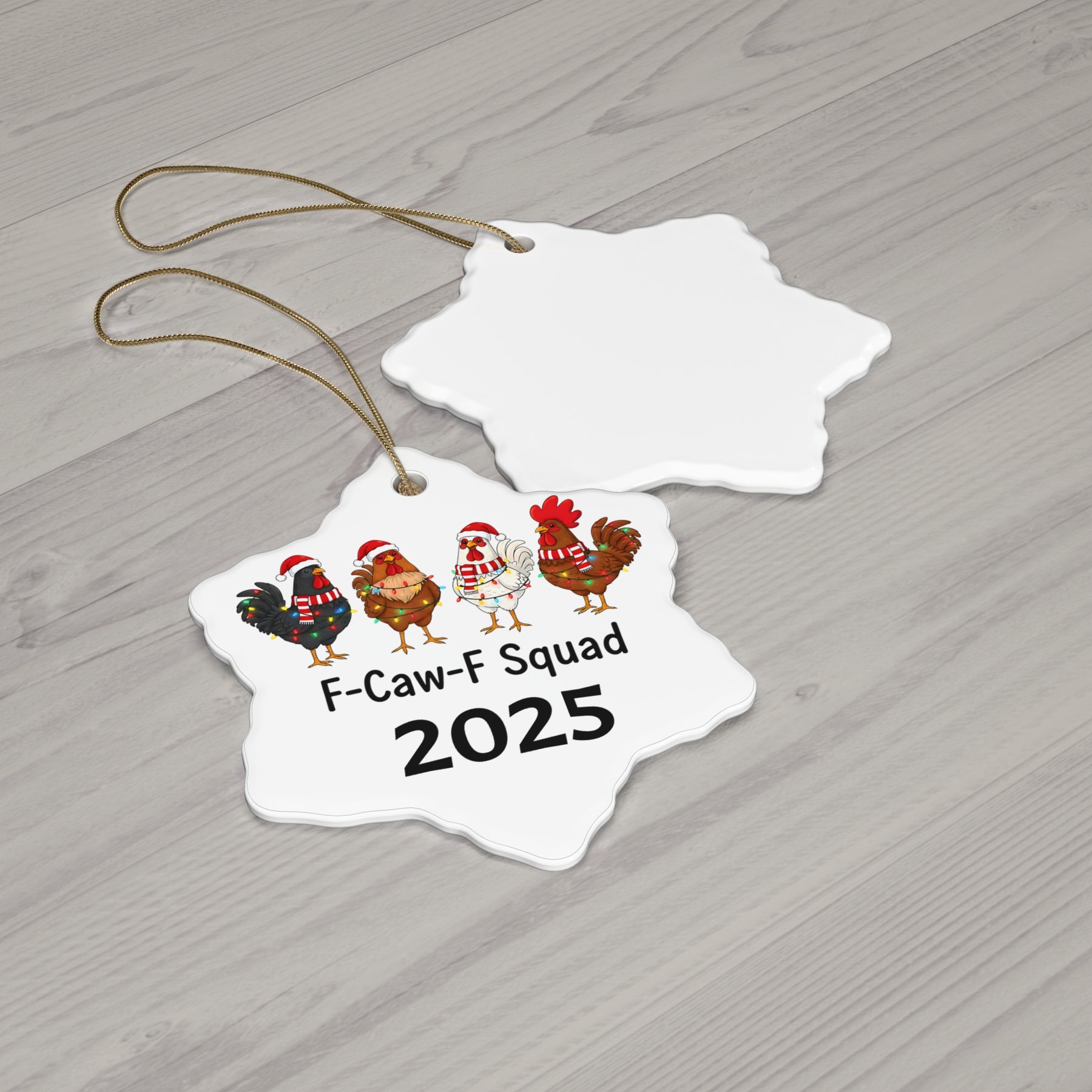 Bring humor and personality to your Christmas tree with the hilarious F-Caw-F Squad Ceramic Ornament where chickens, caffeine, and chaos collide! 🐓💀 Perfect for anyone who starts their day with coffee and sarcasm, this ornament adds a fun twist to your holiday décor. Crafted from high-quality ceramic with a glossy finish, it’s durable, lightweight, and ready to hang. Whether for yourself or your coffee-loving crew, this piece is sure to get a laugh every time it’s spotted on the tree.